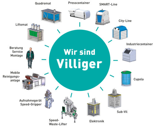 Der Name Villiger steht in der Entsorgungswirtschaft seit Jahrzehnten für durchdachte und praxisnahe Qualitäts-Lösungen. Unternehmertum, Pioniergeist und Freude an der Innovation prägen die Gegenwart und Zukunft der Villiger Gruppe.
