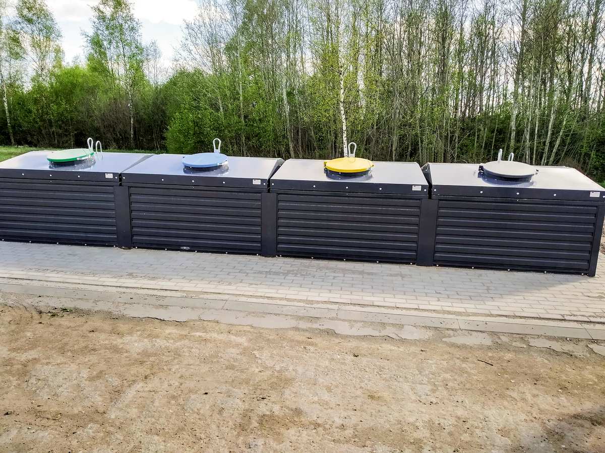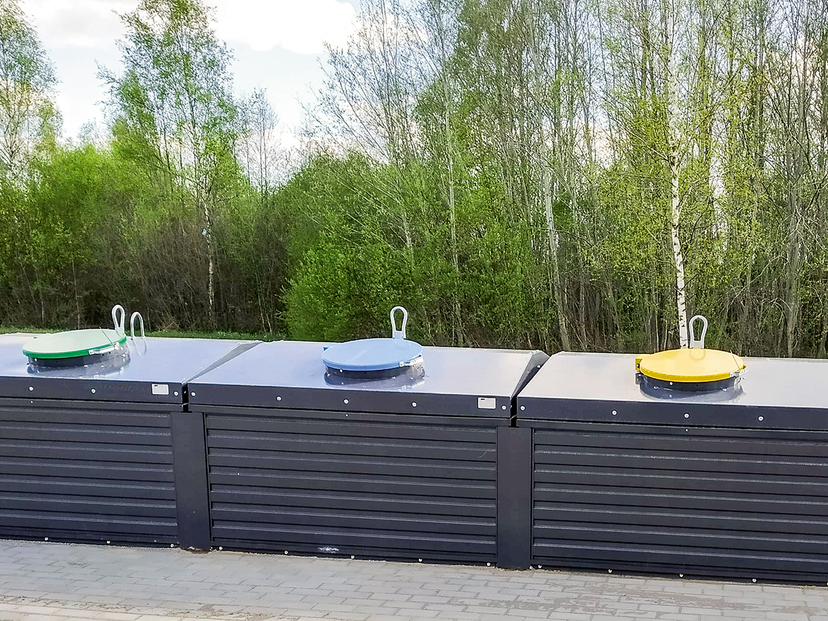 Due to the raised installation, no safety platform is required. The specially designed roof, together with the side cladding made of trapezoidal sheet metal, gives a modern appearance.
