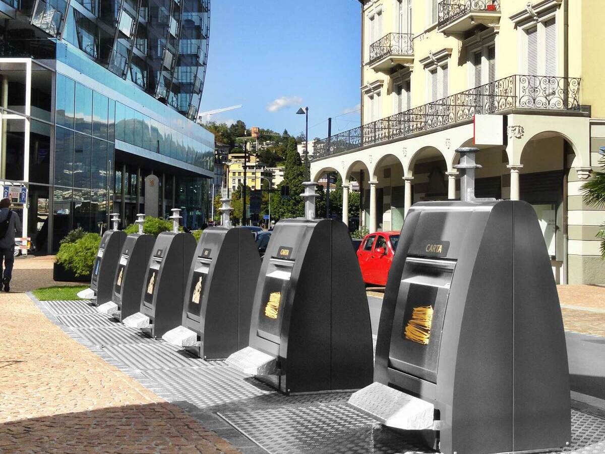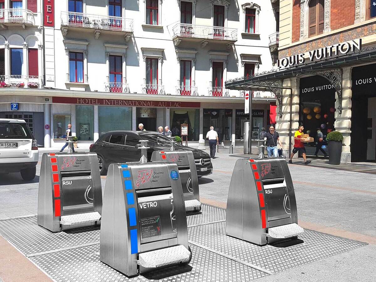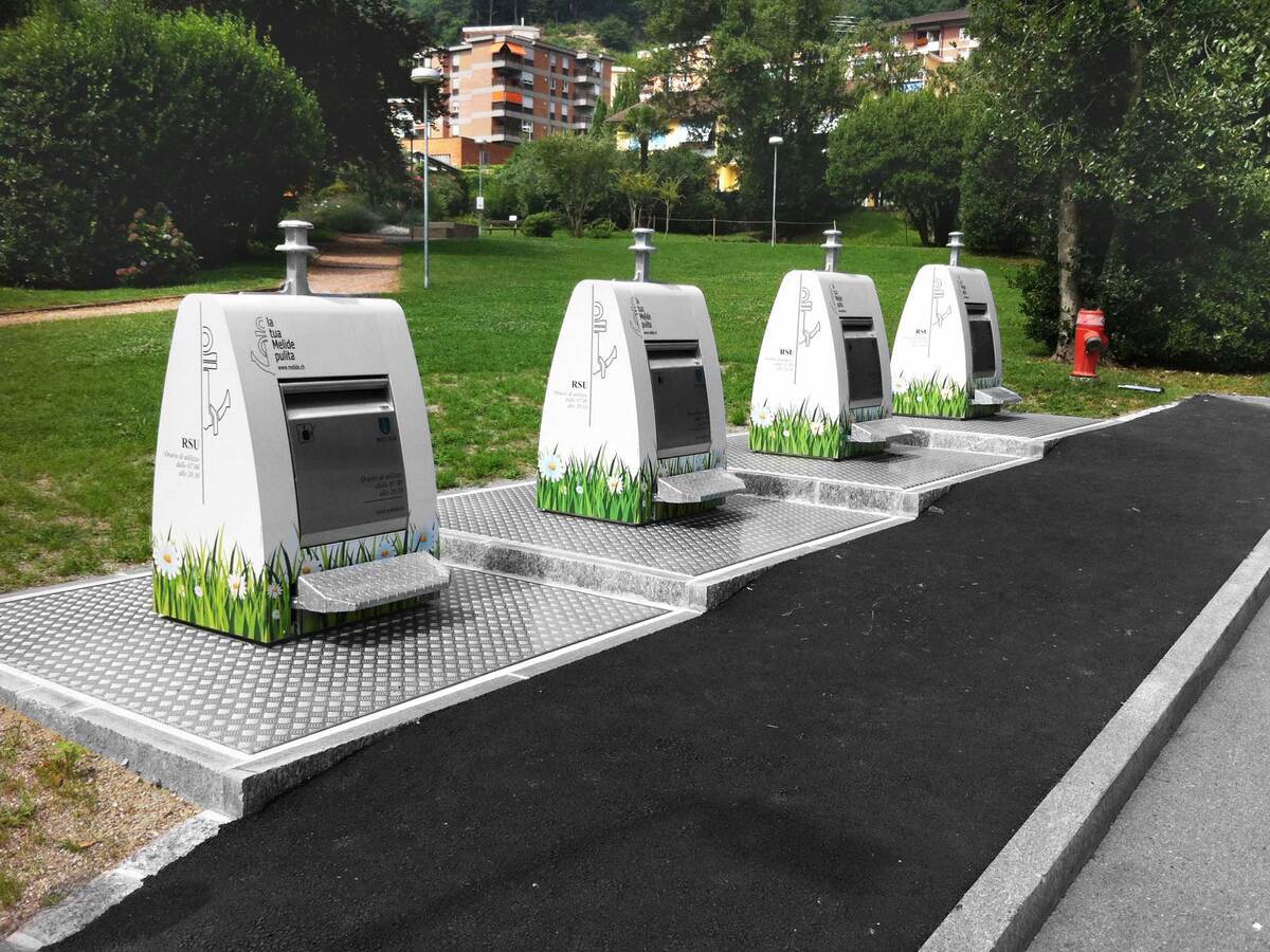 The Lugano throw-in column is characterised by an aesthetic and functional design. It is available in several sizes with top, tilt tray and double drum throw-in. This column allows a collection point to present a uniform appearance for all types of waste, even with different disposal capacities. It can also be upgraded with an access and fill-level control system. The Lugano throw-in column is compatible with all common emptying systems.