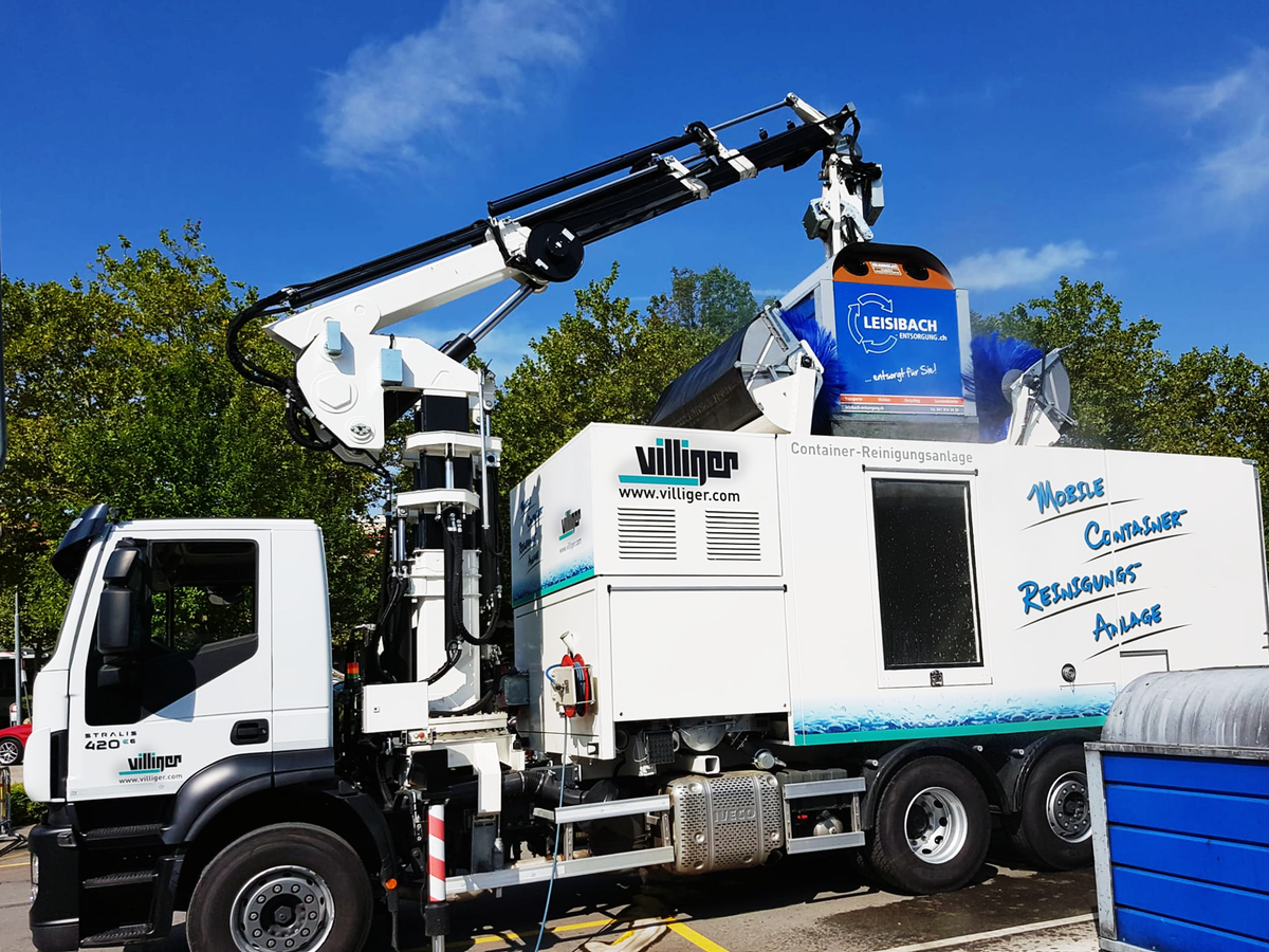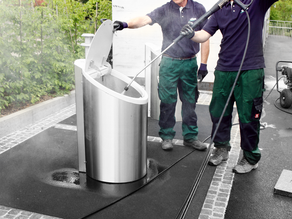 The mobile Villiger cleaning system is a cost-optimized service. We clean and maintain entire collection points in the shortest possible time and contribute to maintaining the value and longevity of waste disposal systems.