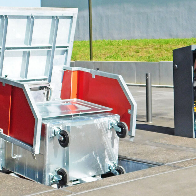 The entire district was equipped with four Quadromat systems. They have been placed so that users can reach a collection point within a maximum of 2-3 minutes on foot. With the Quadromat system, waste collection is practically invisible. A press container with a volume of 12 -20 m3 is placed underground and from above only the casting column is visible. The waste is compacted on site, making optimal use of the volume. To empty the container, the platform can be removed from the ground and the container becomes accessible for emptying.