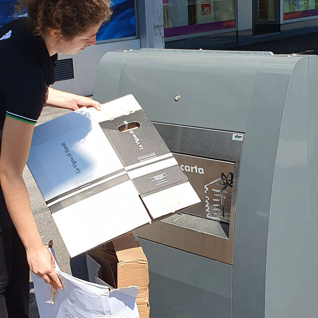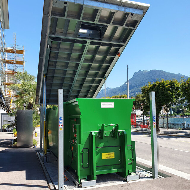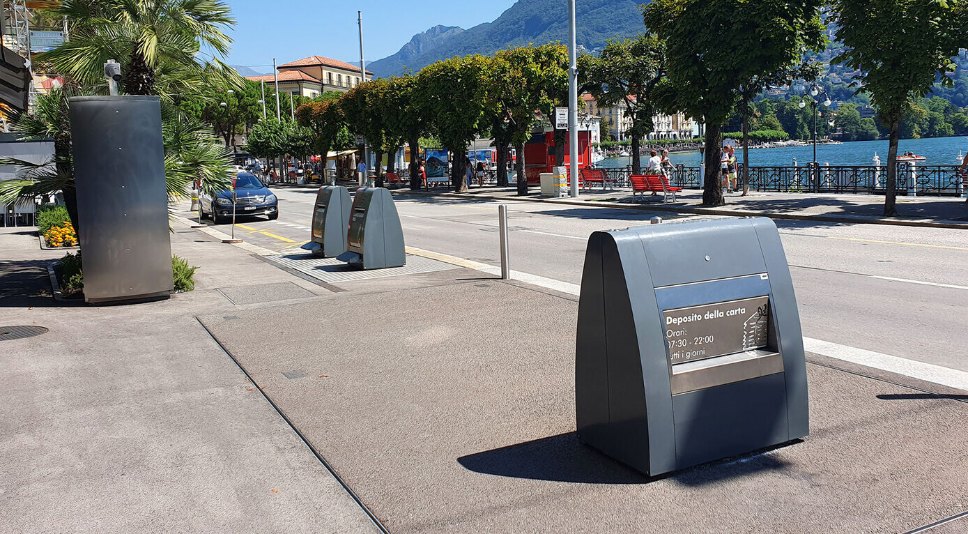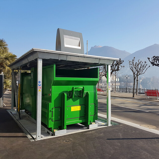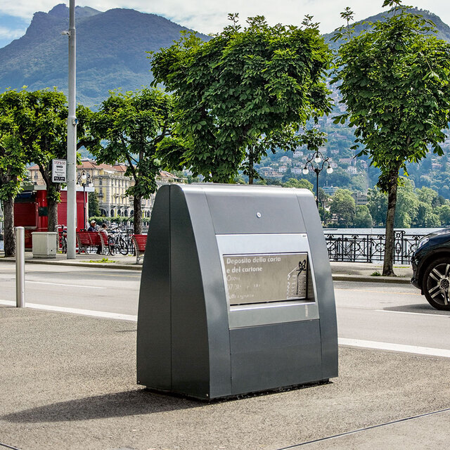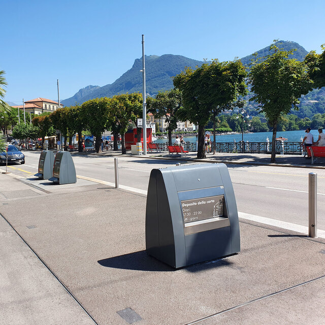 Lugano's attractive promenade has numerous retail stores and boutiques, as well as hotels and restaurants, where large quantities of cardboard are generated every day. It is also worth mentioning that Lugano has more than 700 underground containers for waste. The city's strategy is to install underground compacting containers for cardboard in the city center. Thanks to the well thought-out "Quadromat" disposal concept, all businesses but also private individuals can dispose of their cardboard underground in the collection points. The throw-in is regulated with specific opening hours and thus locked during the night.