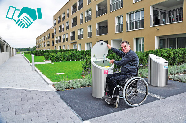 Tout le monde doit avoir accès à la gestion des déchets. Ainsi, tous les produits de Villiger sont accessibles en fauteuil roulant, afin que les personnes à mobilité réduite puissent également y accéder. Mais Villiger se préoccupe également d'autres handicaps physiques, comme la limitation de la vue, et inscrit ses produits en braille sur demande.